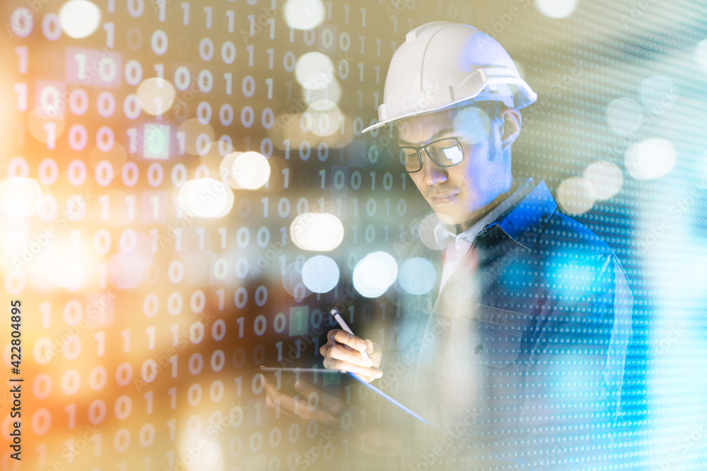 Wall mural engineer in factory futuristic cloud data cyber space background, artificial intelligence and digita - Wall murals Wall mural engineer in factory futuristic cloud data cyber space background, artificial intelligence and digita - Wall murals