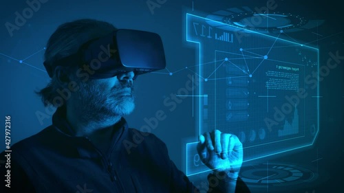 Wall mural engineer wearing vr smart glasses uses a virtual touch screen interface. concept of futuristic engin - Wall murals Wall mural engineer wearing vr smart glasses uses a virtual touch screen interface. concept of futuristic engin - Wall murals