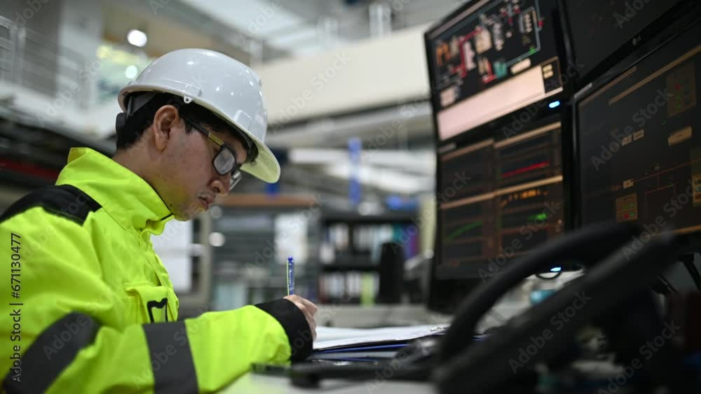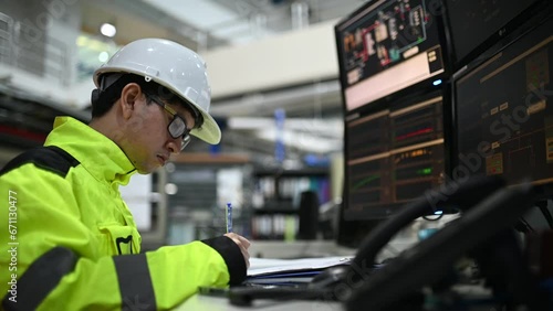 The watermark will not be included on Wall mural.: Engineer working at control room,manager control system,technician man monitoring program from a lot