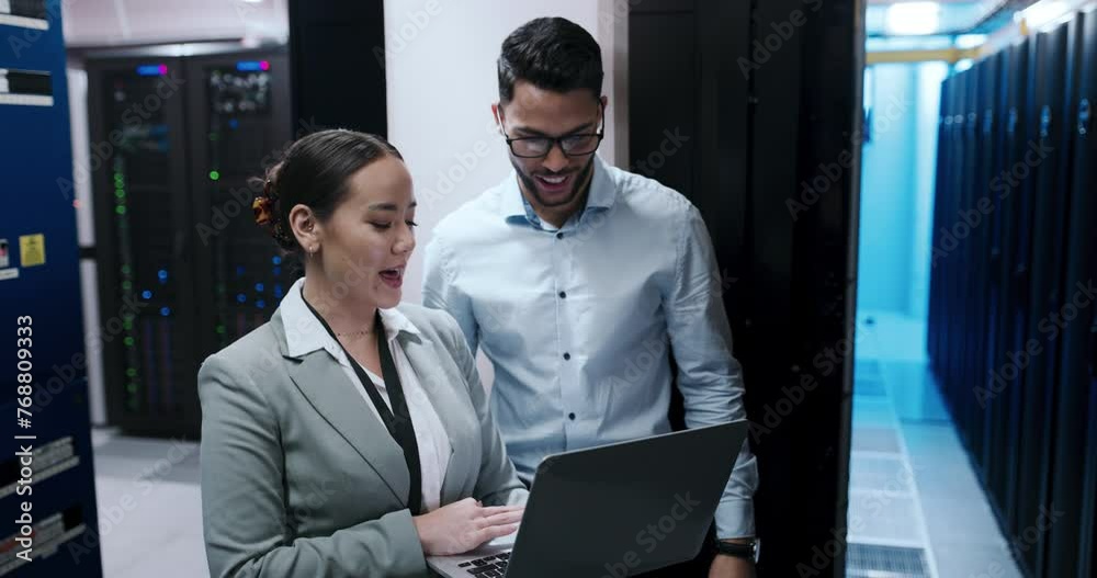 Wall mural engineering team, computer and server room for cloud computing, programming or hardware solution. te