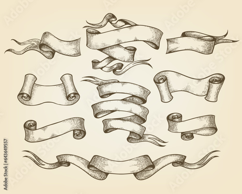Wall mural engraving scroll and ribbon set - Wall murals Wall mural engraving scroll and ribbon set - Wall murals