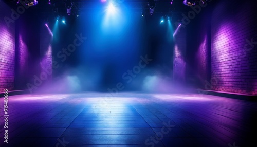 The watermark will not be included on Wall mural.: Enigmatic dark stage with empty space deep blue and purple hues creating mysterious ambiance subtle