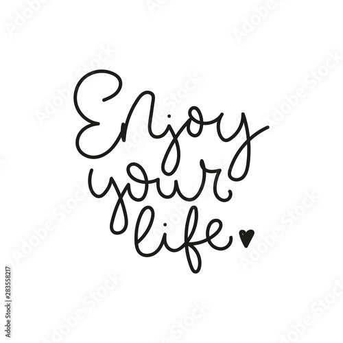 The watermark will not be included on Wall mural.: Enjoy your life poster vector illustration - inspirational quote written in black font with little he