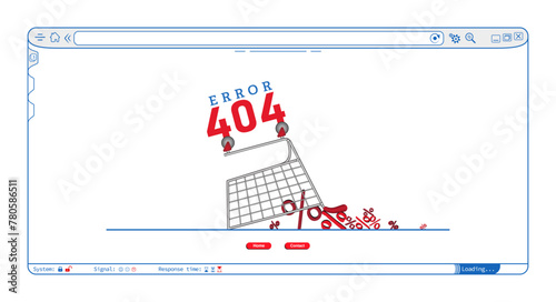 Wall mural error 404 abstract browser homepage design with shopping cart, percentage vector. webpage internet s