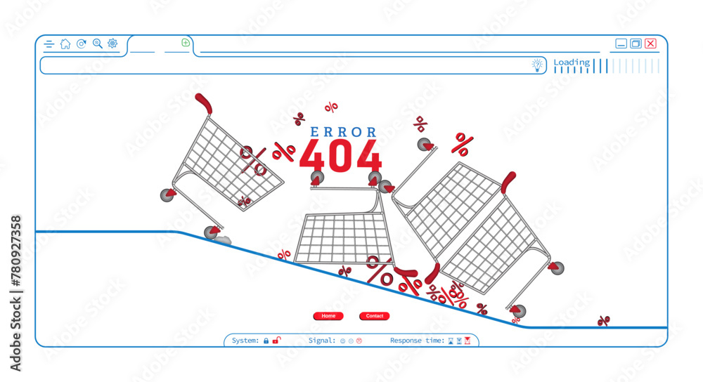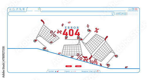 Wall mural : Error 404 abstract browser webpage design with shopping carts, percentage vector - creative webpage i