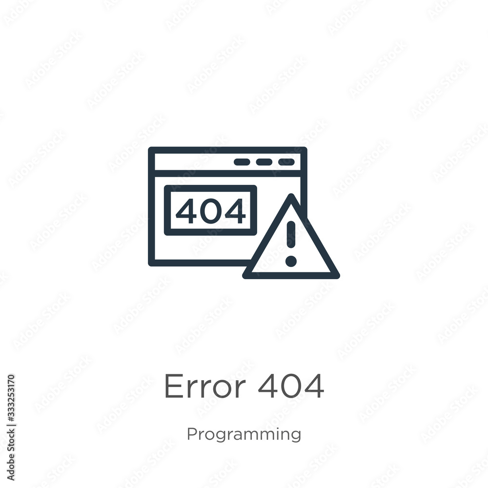 The watermark will not be included on Wall mural.: Error 404 icon - thin linear error 404 outline icon isolated on white background from programming col
