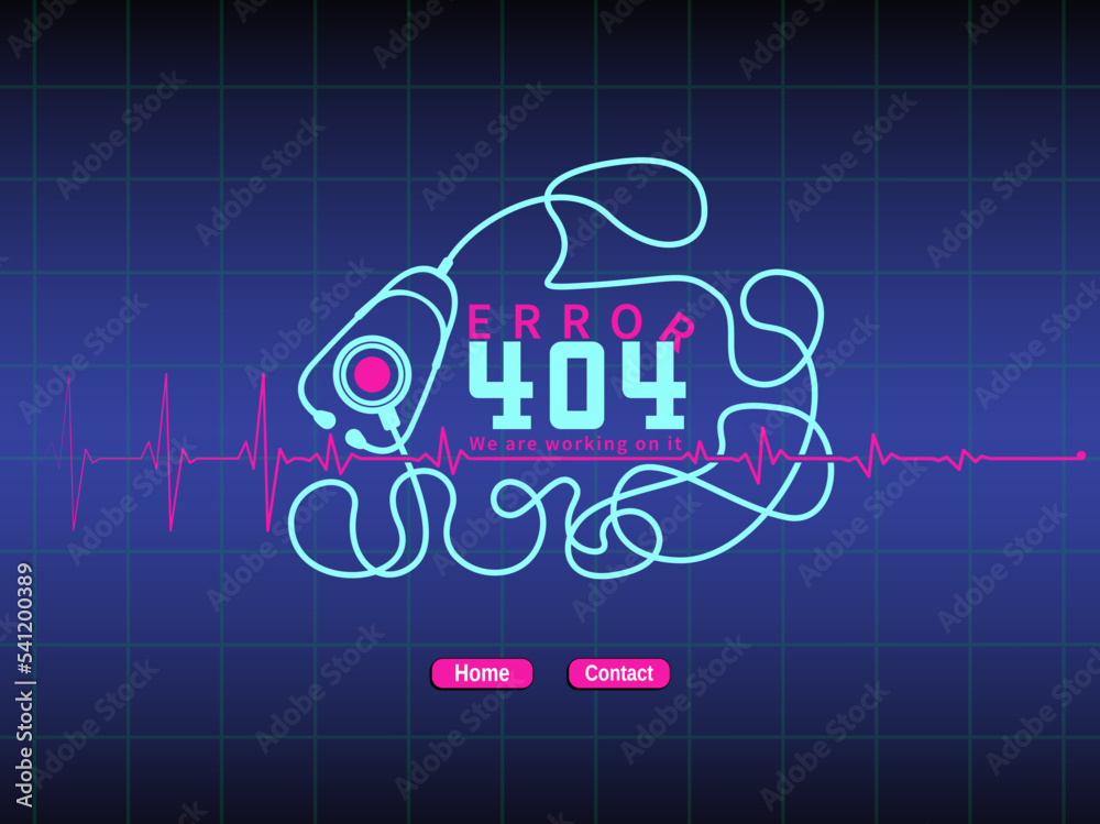 Wall mural : Error 404 medical healthcare background design with heart rate vector design - webpage not working wa