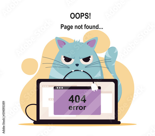 Wall mural error 404 poster. angry cat sits next to laptop, user cannot open desired page on internet. wrong we - Wall murals Wall mural error 404 poster. angry cat sits next to laptop, user cannot open desired page on internet. wrong we - Wall murals