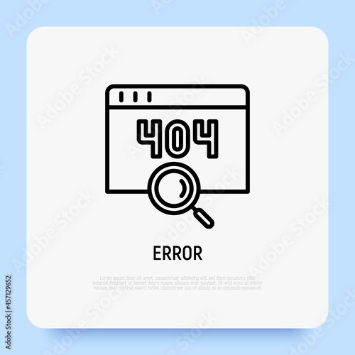 Error page thin line icon - window with 404 sign and magnifier - modern vector illustration - Wall mural