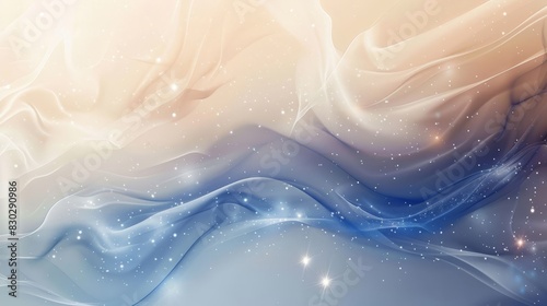 Wall mural : Ethereal blend of ivory and sapphire with subtle waves and stars backdrop