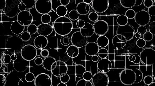 The watermark will not be included on Wall mural.: Ethereal circles and stars abstract pattern on dark backdrop graphic art elegant light overlay desig