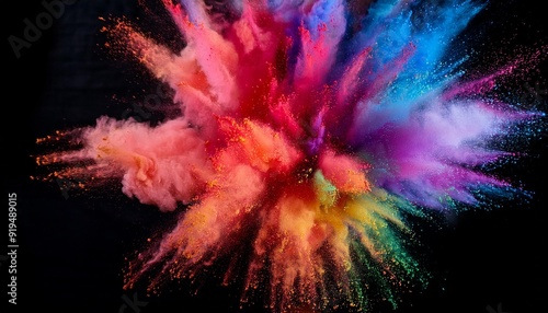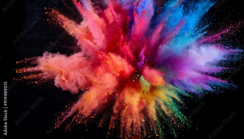 Wall mural ethereal explosion of vibrant holi powder freezeframe capture psychedelic color palette billowing cl