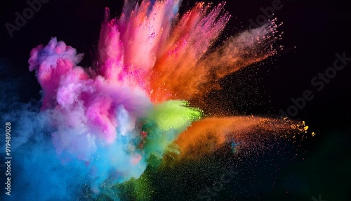 Wall mural ethereal explosion of vibrant holi powder freezeframe capture psychedelic color palette billowing cl