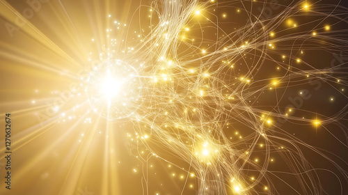 Wall mural ethereal golden light bursting forth from an energy core with flowing filaments effect - Wall murals Wall mural ethereal golden light bursting forth from an energy core with flowing filaments effect - Wall murals