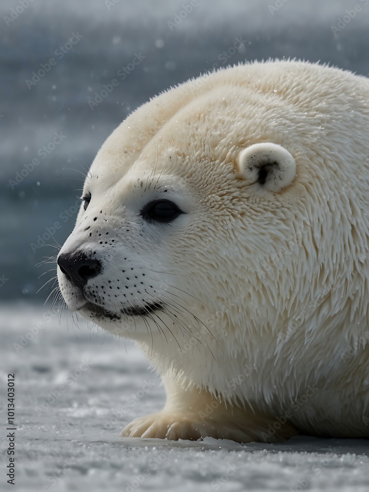 The watermark will not be included on Wall mural.: Ethereal harp seal in a serene setting -