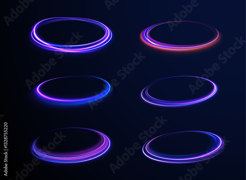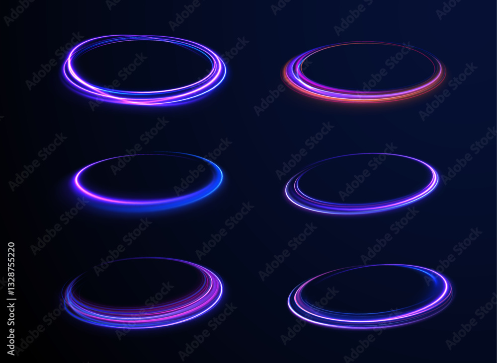 Wall mural : Ethereal light portals: a mesmerizing array of vibrant neon ovals and swirling energy loops that res