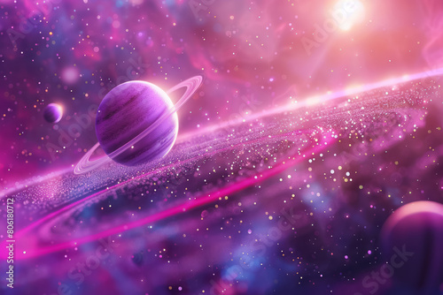 The watermark will not be included on Wall mural.: Ethereal pink nebula with planets and sparkling stars