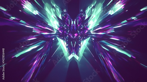 Wall mural ethereal purple and green abstract design representing cosmic gravity distortions and illuminations