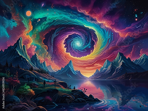 The watermark will not be included on Wall mural.: Ethereal reverie : step into a dreamscape where abstract forms waltz with celestial hues - floating i