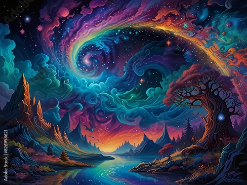 Wall mural ethereal reverie : step into a dreamscape where abstract forms waltz with celestial hues. floating i - Wall murals Wall mural ethereal reverie : step into a dreamscape where abstract forms waltz with celestial hues. floating i - Wall murals