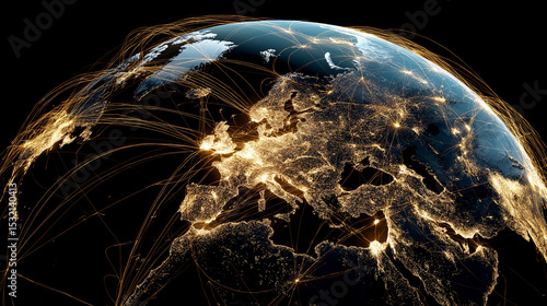 Wall mural europe-focused digital earth view with glowing connection lines symbolizing global data exchange. - Wall murals Wall mural europe-focused digital earth view with glowing connection lines symbolizing global data exchange. - Wall murals