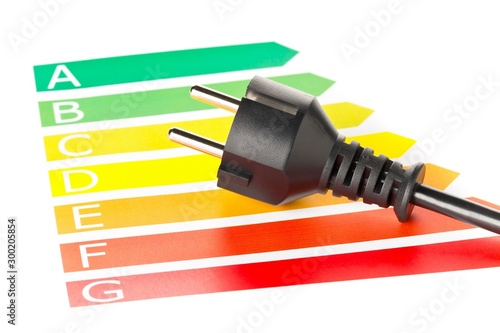 Wall mural : European energy classification labels with power cord on white - energy saving or power consumption