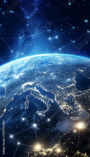 Wall mural : European telecommunication and data transfer networks with global internet connectivity -