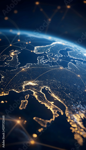 Wall mural european telecommunication and data transfer networks with global internet connectivity -