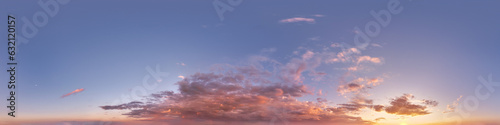 Wall mural : Evening blue sky hdr 360 panorama with pink beautiful clouds in seamless projection with zenith for