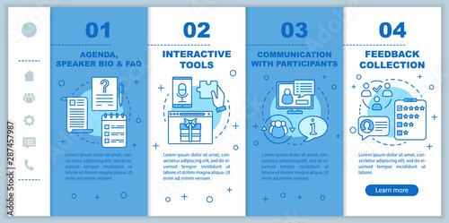 Wall mural : Event app onboarding mobile web pages vector template - interactive tools, communication with partici