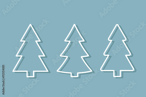 Wall mural : Evergreen conifer white line icon set, fir, spruce tree, set of three simple vector elements on blue