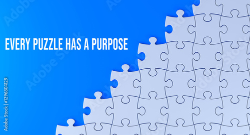 The watermark will not be included on Wall mural.: Every puzzle has a purpose text message on jigsaw puzzle - blue background and word banner concept
