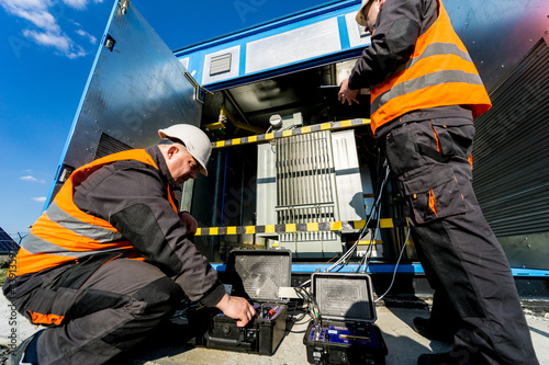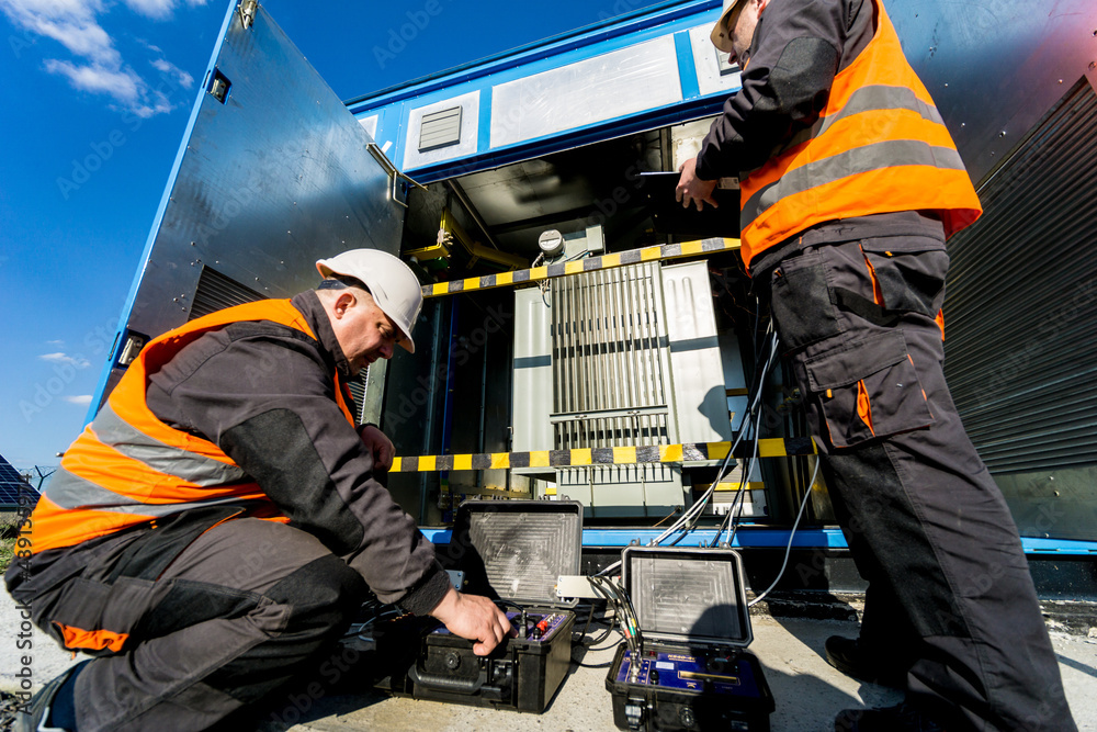 Wall mural execution of electrical measuring works on the power transformer - Wall murals Wall mural execution of electrical measuring works on the power transformer - Wall murals
