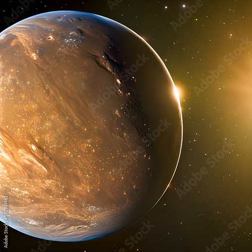 The watermark will not be included on Wall mural.: Exoplanet orbiting in outer space - extraterrestrial solar system - generative artificial intelligence
