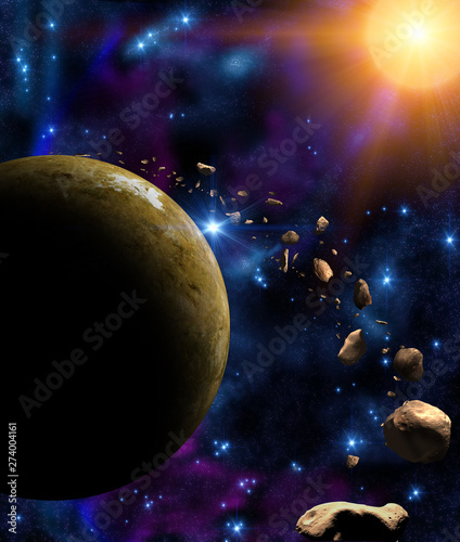 Wall mural : Exoplanets and asteroids in deep space with stars - elements of this image furnished by nasa