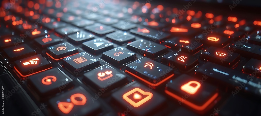 Wall mural expansive banner display featuring a laptop showcasing multiple icons - Wall murals Wall mural expansive banner display featuring a laptop showcasing multiple icons - Wall murals