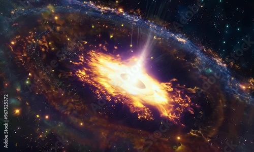Wall mural expansive explosion of light and particles, representing the birth of the universe in a dark, starle - Wall murals Wall mural expansive explosion of light and particles, representing the birth of the universe in a dark, starle - Wall murals