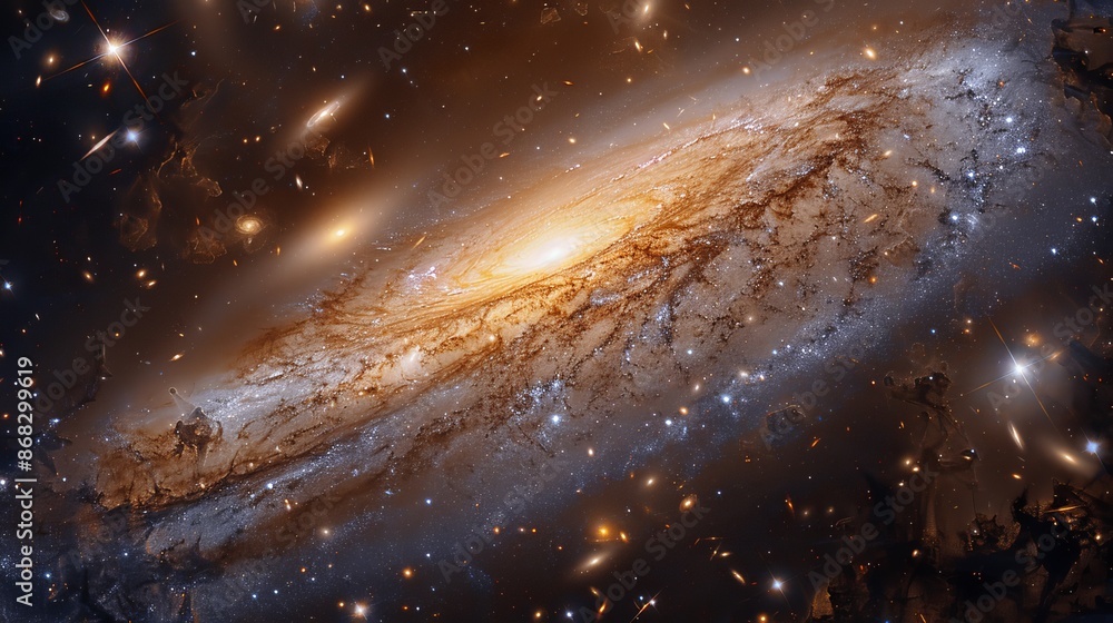 The watermark will not be included on Wall mural.: Expansive galaxy with swirling arms of stars and interstellar clouds generative ai