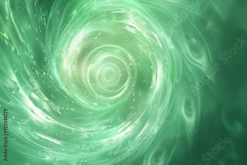 Wall mural : Experience a mesmerizing green swirl background enriched with soft glowing effects, ideal for variou