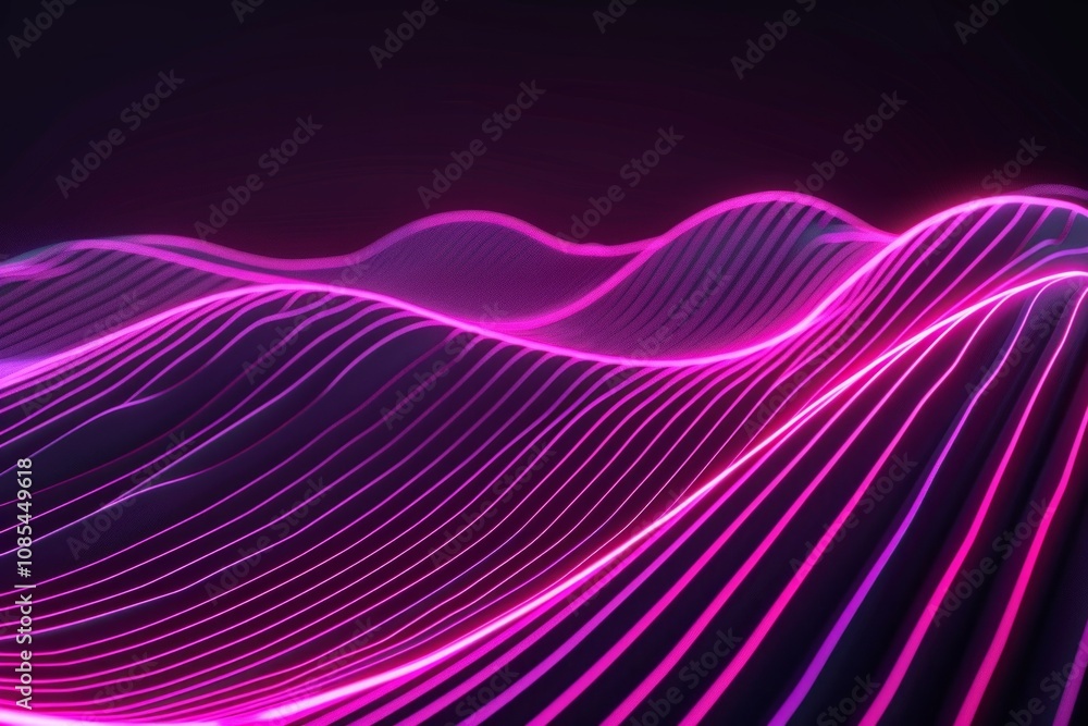 The watermark will not be included on Wall mural.: Experience the elegance of a wave of glowing lines, small particles flowing seamlessly in an abstrac