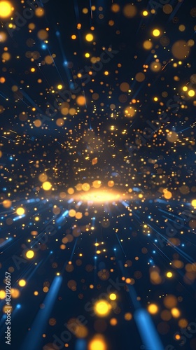 Wall mural : Exploding golden particles and light rays in vibrant digital space