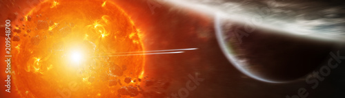 Wall mural exploding sun in space close to planet 3d rendering elements of this image furnished by nasa