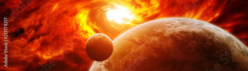 Exploding sun in space close to planet 3d rendering elements of this image furnished by nasaWall mural