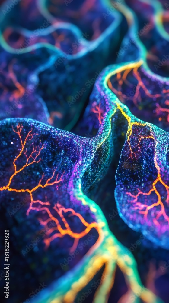 The watermark will not be included on Wall mural.: Explore a mesmerizing abstract image showcasing vibrant neural patterns and fluid shapes - the multic