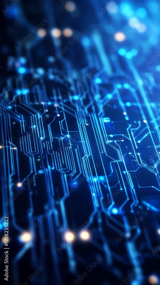 Wall mural explore an abstract image of a blue circuit board pattern featuring glowing lights and intricate lin - Wall murals Wall mural explore an abstract image of a blue circuit board pattern featuring glowing lights and intricate lin - Wall murals