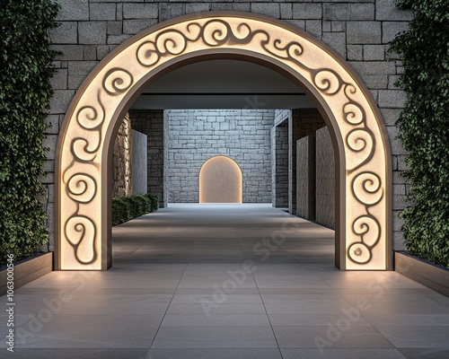 The watermark will not be included on Wall mural.: Explore the captivating architectural design of a stunning illuminated archway in modern spaces