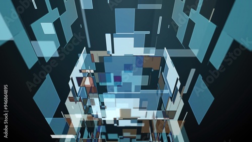 The watermark will not be included on Wall mural.: Exploring a digital tunnel made of vibrant geometric shapes and patterns in a futuristic environment
