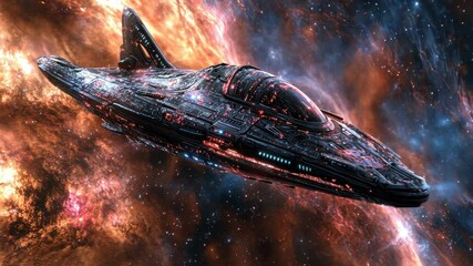 Wall mural : Exploring a vibrant hyperspace fractal tunnel with swirling blue lights and glowing particles, hyper