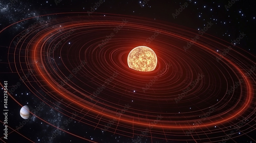 The watermark will not be included on Wall mural.: Exploring celestial dynamics the sun and its orbiting planets outer space digital art cosmic environ