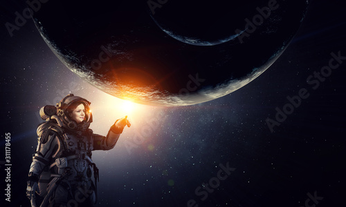 Wall mural exploring outer space. mixed media